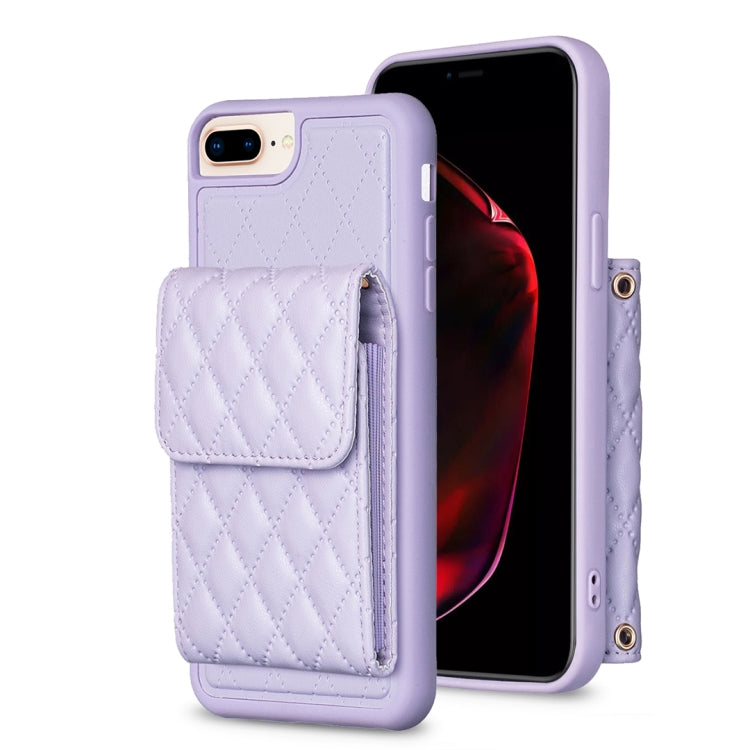 For iPhone 7 Plus/8 Plus Vertical Wallet Rhombic Leather Phone Case(Purple)