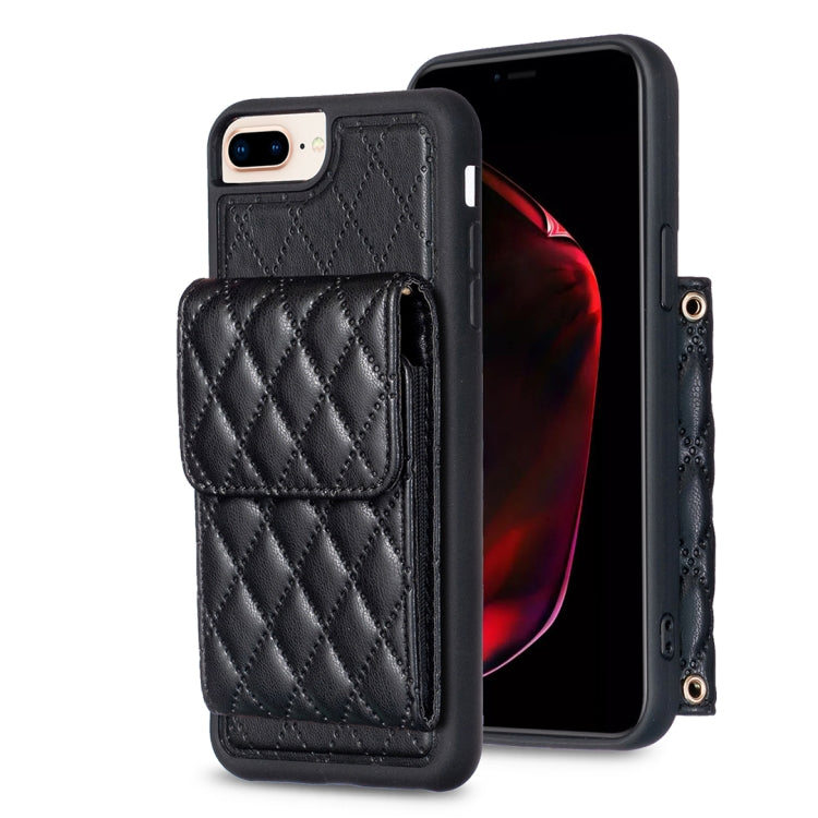 For iPhone 7 Plus/8 Plus Vertical Wallet Rhombic Leather Phone Case(Black)