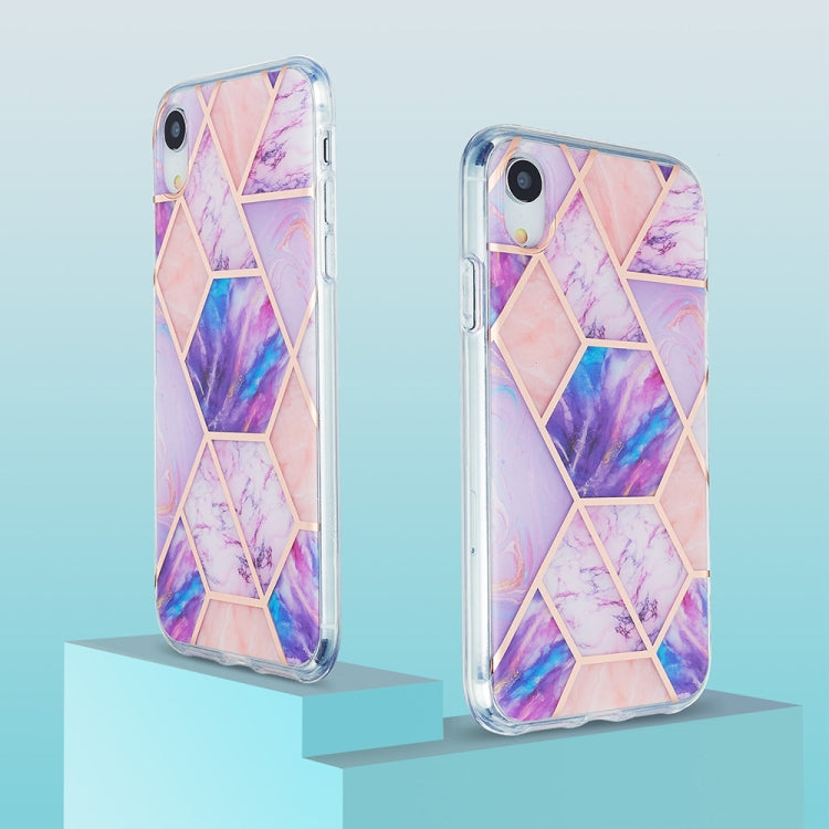 Funda Protectora TPU iPhone Xr 3D Galvanoplastia Patrón de Mármol (Rosa Púrpura)