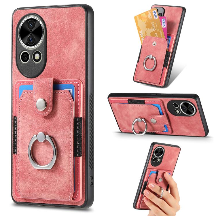 Funda para Teléfono Huawei Nova 13 Pro con Tarjetero y Anillo Tacto de Piel (Rosa)