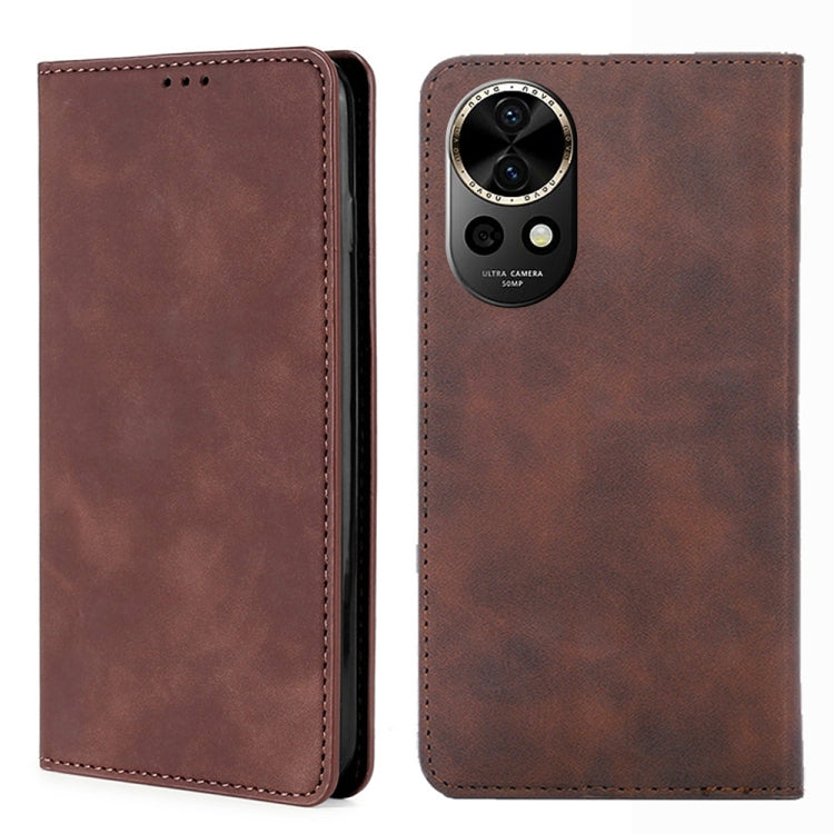Funda de Cuero Magnética para Huawei Nova 12 5G Skin Feel (Marrón Oscuro)
