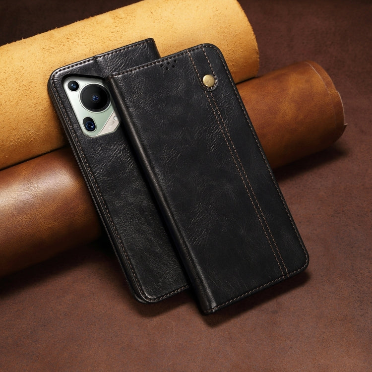Funda de Cuero para Huawei Pura 70 Ultra Oil Wax Crazy Horse Texture (Negro)