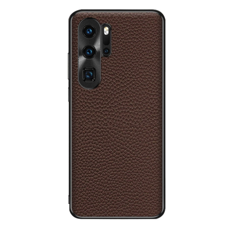 Funda de Teléfono Huawei P30 Pro con Textura Litchi de Cuero Genuino (Café)