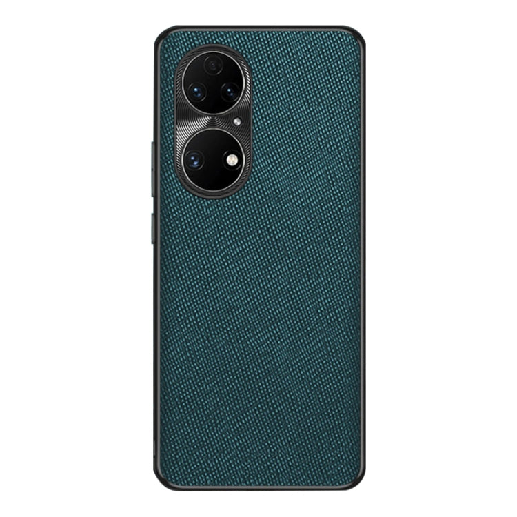 Funda para Teléfono Huawei P50 de Cuero PU con Textura Cruzada (Verde Oscuro)