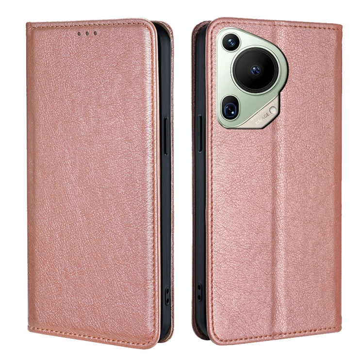 Funda para Huawei Pura 70 de Cuero Magnético con Aceite Ultra Brillante (Oro Rosa)