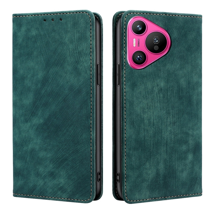 Funda para Huawei Pura 70 de Cuero Magnético con Cepillo Antirrobo RFID (Verde)