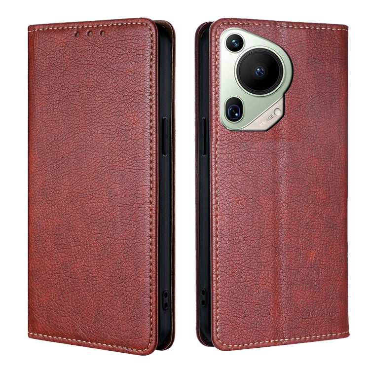 Funda para Huawei Pura 70 de Cuero Magnético con Aceite Ultra Brillante (Marrón)