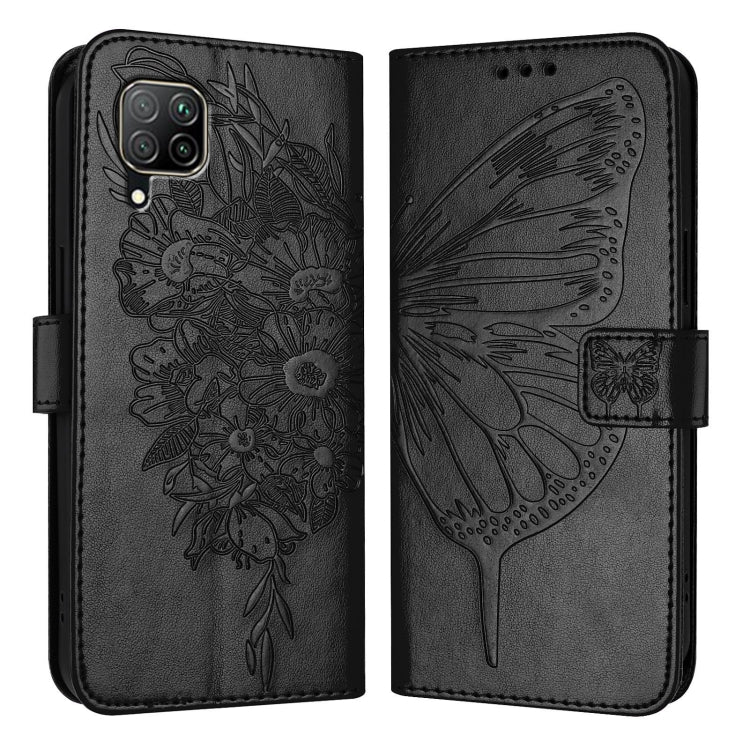 Funda de Cuero para Huawei P30 Lite Nova 4E con Mariposa en Relieve (Negro)