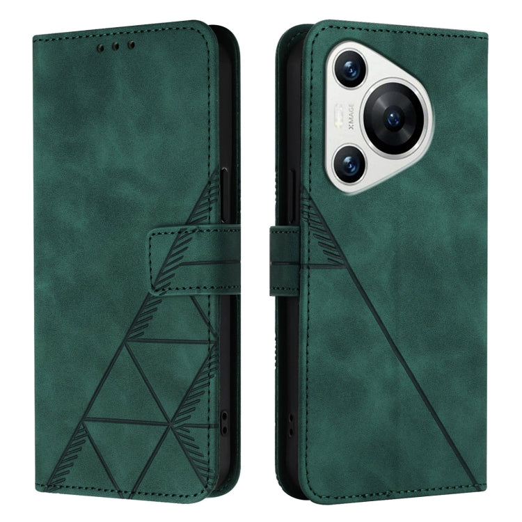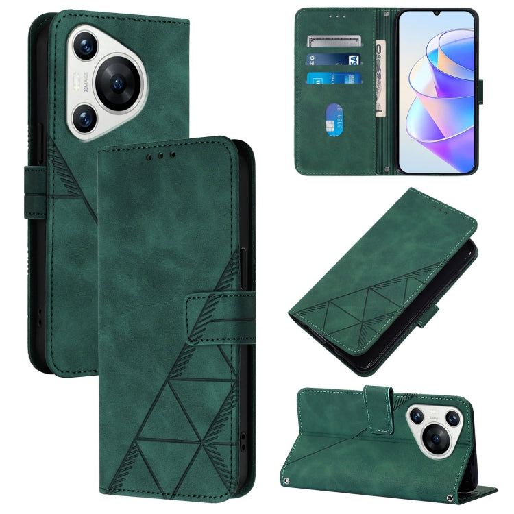 Funda de Cuero para Huawei Pura 70 Crossbody con Tapa En Relieve 3D (Verde Oscuro)