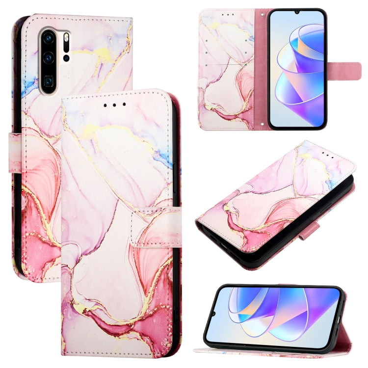 Funda de Cuero con Tapa para Huawei P30 Pt003 con Patrón de Mármol (Oro Rosa)