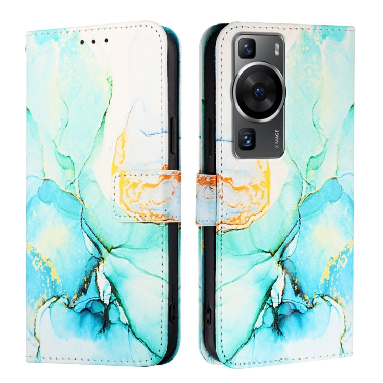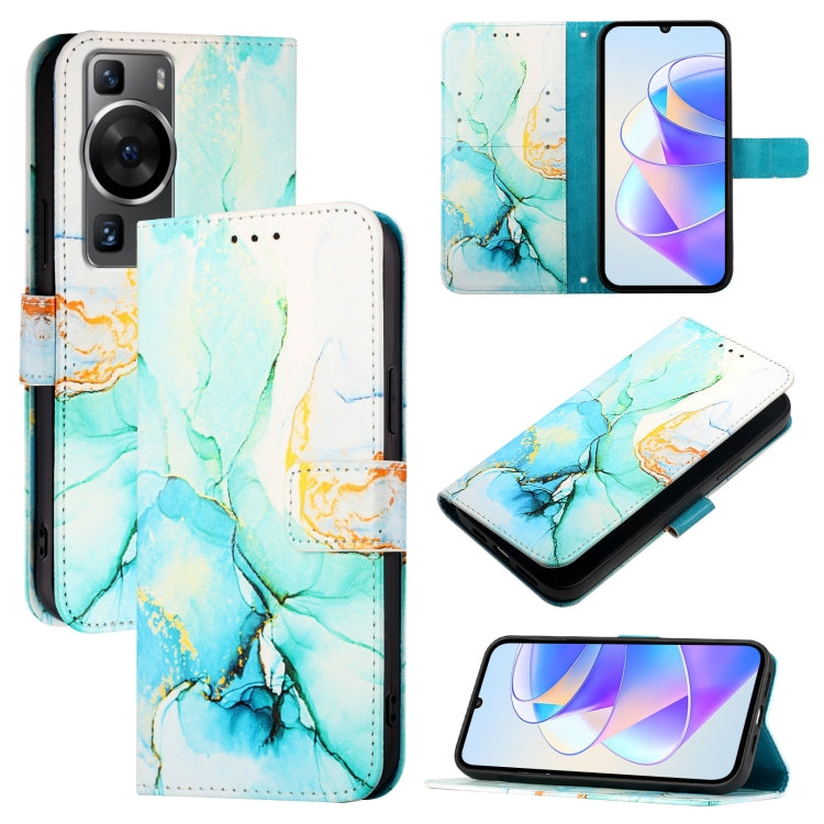 Funda de Cuero para Huawei P50 Pt003 con Tapa y Patrón de Mármol (Verde)