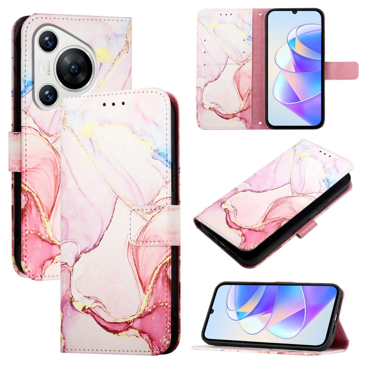 Funda de Cuero para Huawei Pura 70 Pt003 con Tapa y Patrón Mármol (Oro Rosa)