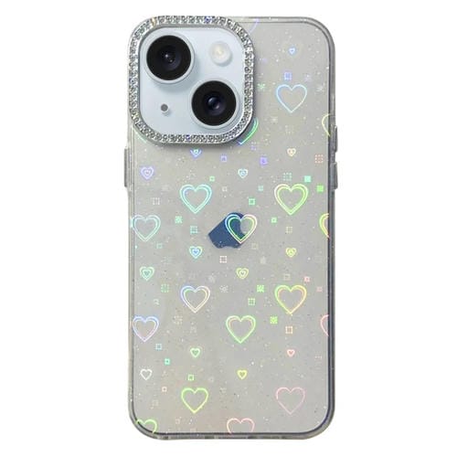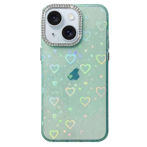 Funda para iPhone 13 Love Pattern Diamond Lens Frame IMD Acrílico (Verde)