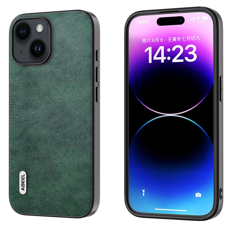 Funda para iPhone 14 Abeel Dual Color Lichi Texture PU Phone Case (Verde)
