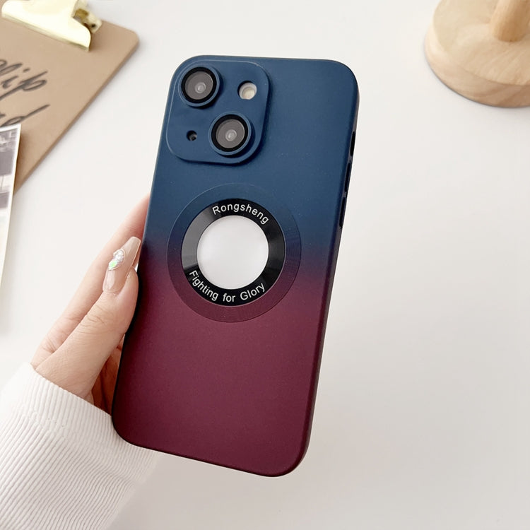 Funda de Teléfono iPhone 14 Magsafe TPU Degradado Dos Colores (Azul + Rojo Vino)