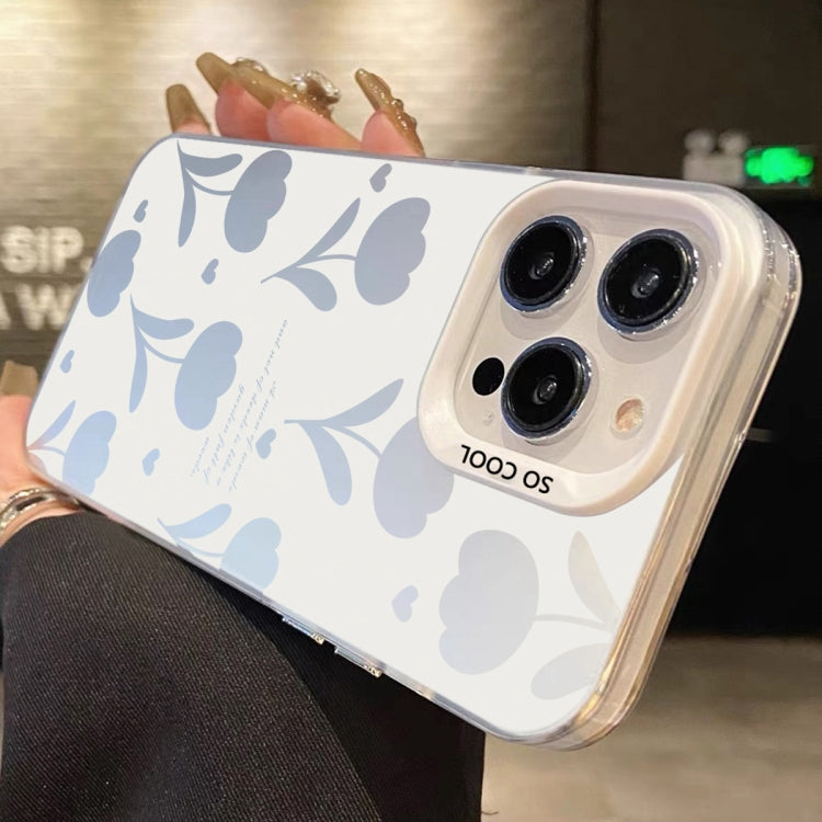 For iPhone 14 Hybrid TPU PC Case with Silver Painting (White Hollow Tulips)