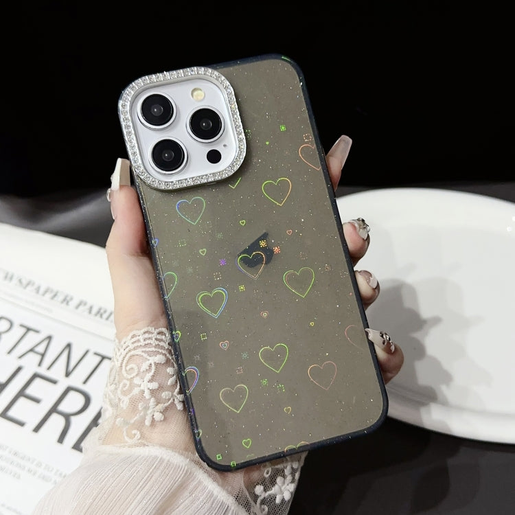 Funda para iPhone 14 Love Pattern Diamond Lens Frame Imd Acrílico (Negro)