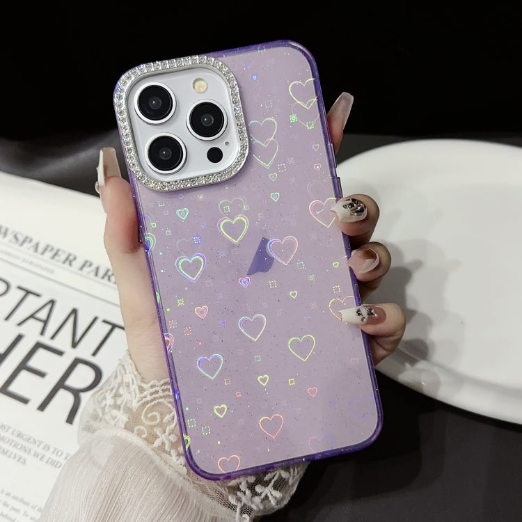 Funda para iPhone 14 Love Pattern Diamond Lens Frame Imd Acrílico (Púrpura)