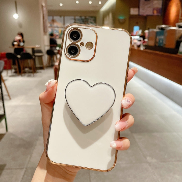 Funda TPU con Soporte Corazón de Amor y Galvanoplastia para iPhone 16 (Blanca)