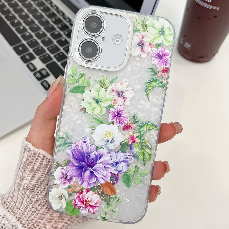 Funda TPU iPhone 16 Textura Plantas Flores Galvanizadas (Flor Violeta Pálido Fl11)