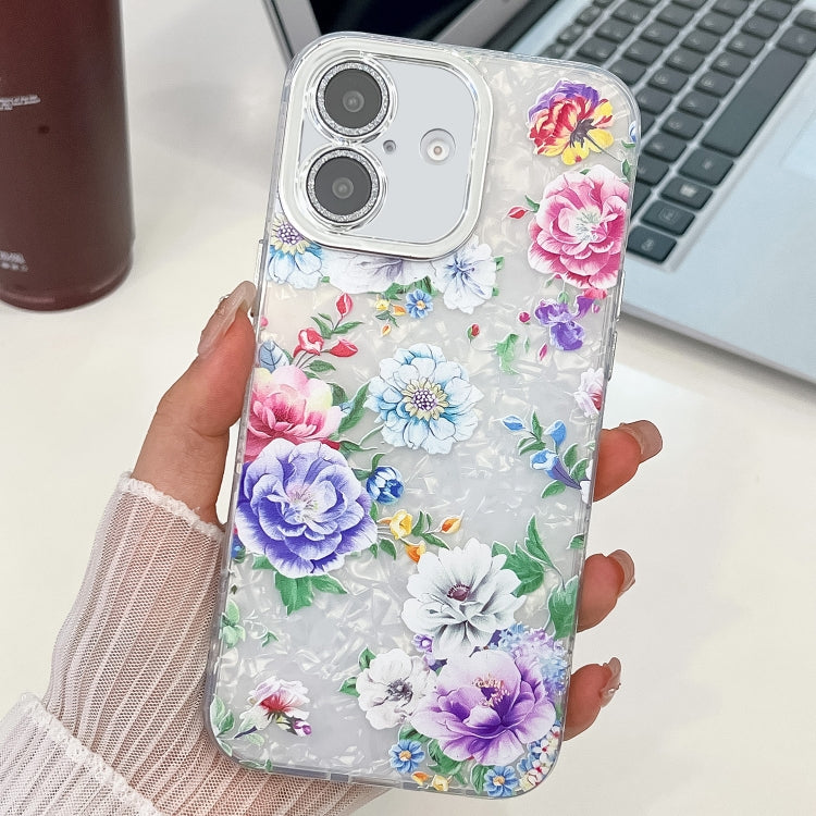 Funda TPU iPhone 16 Textura Plantas Flores Galvanizadas (Peonía Colorida)