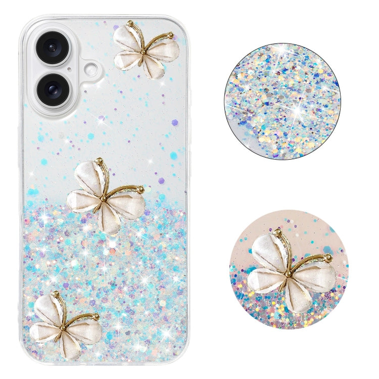 Funda TPU iPhone 16 Diseño Mariposa Brillo Cielo Estrellado Luminoso (Blanca)