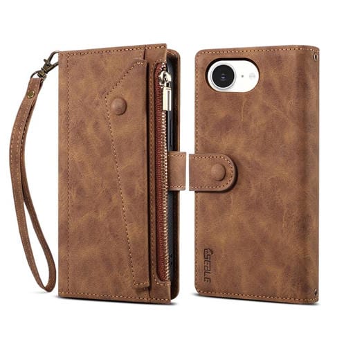 Funda de Cuero con Tapa Rfid Esmerilada Retro Eseble para iPhone 16E (Marrón)