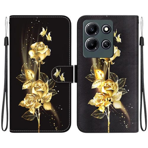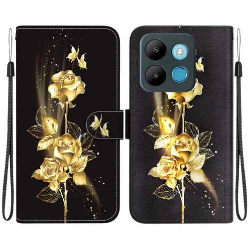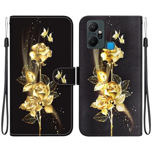 Funda de Cuero para Infinix Smart 7 Africa con Dibujo Coloreado Peonía Dorada