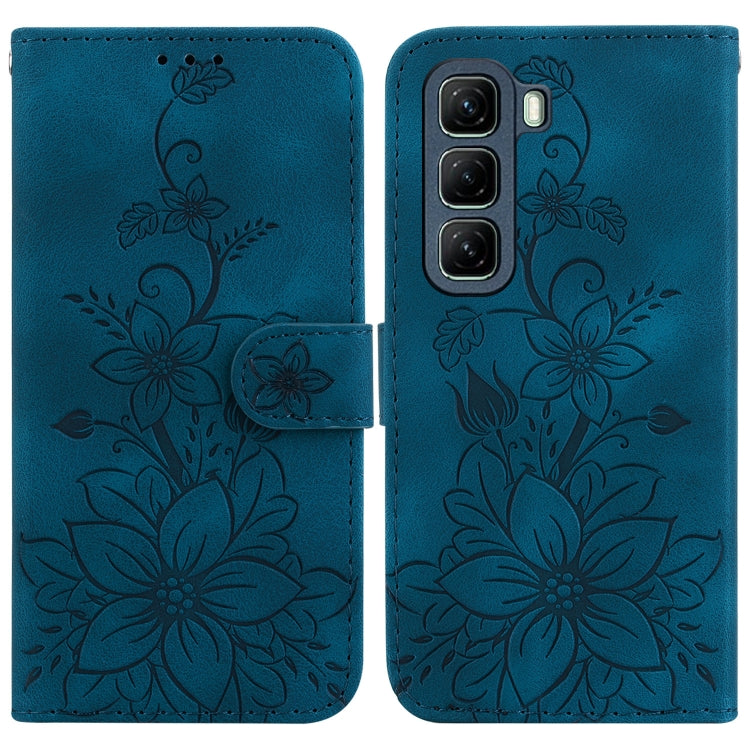 Funda de Cuero con Relieve de Lirio para Infinix Hot 50 5G (Azul Oscuro)