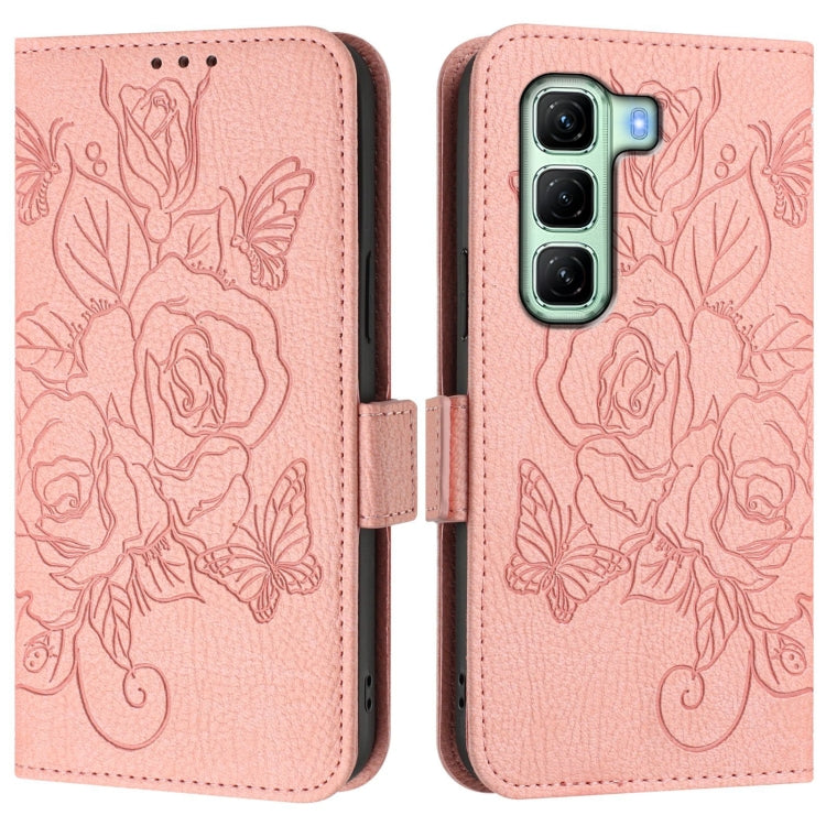 Funda de Cuero Antirrobo RFID con Relieve para Infinix Hot 50 5G (Rosa)