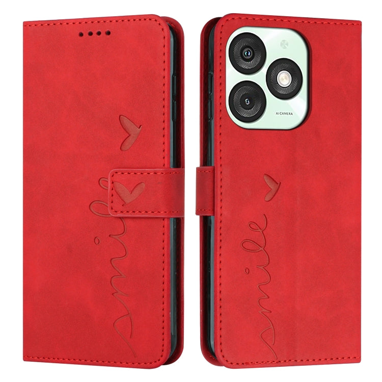 Funda de Piel con Relieve de Corazón y Cordón Largo para Teléfono Itel A80 (Rojo)