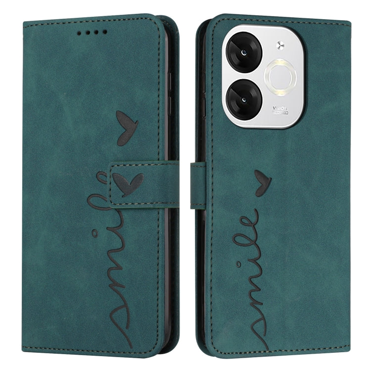 Funda de Piel con Relieve de Corazón y Cordón Largo para Teléfono Itel A80 (Verde)