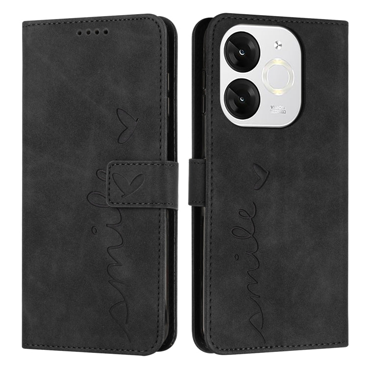 Funda de Piel con Relieve de Corazón y Cordón Largo para Teléfono Itel A80 (Negro)