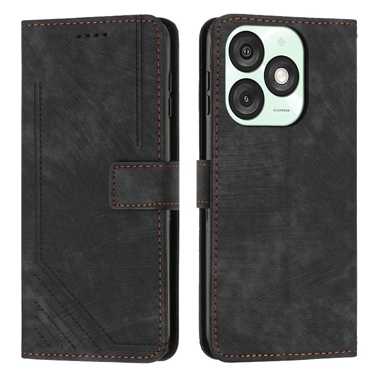 Funda de Cuero Itel A50 con Diseño de Rayas y Cordón (Negro) Tacto Agradable