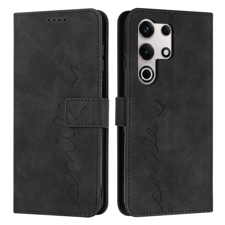 Funda de Piel con Relieve de Corazón y Cordón Largo para Itel S25 Ultra (Negro)