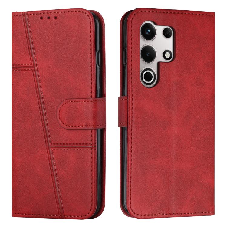 Funda de Cuero con Textura de Becerro y Costuras para Teléfono Itel S25 (Rojo)