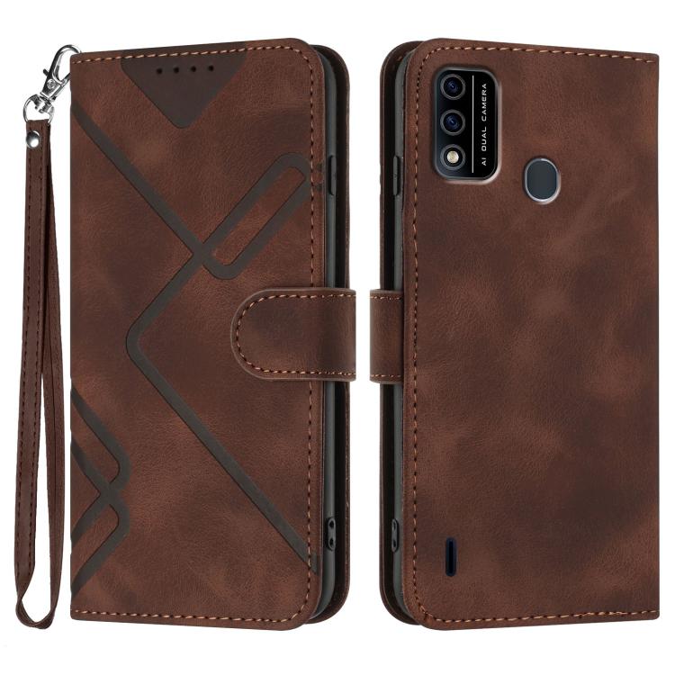 Funda de Piel Sintética con Diseño de Líneas para Teléfono Itel A48 (Café)