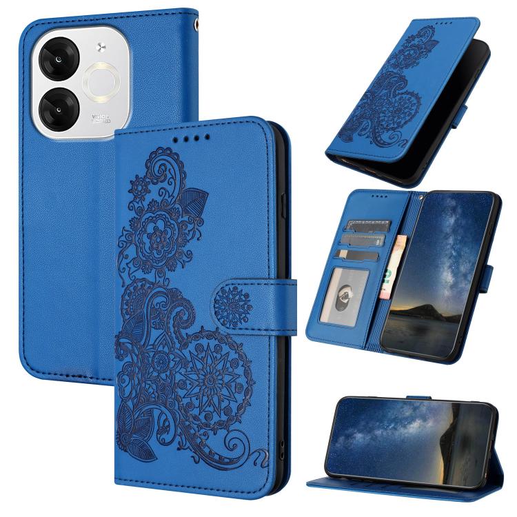 Funda de Cuero con Tapa para Teléfono Itel A80 con Relieve de Flor de Datura (Azul)