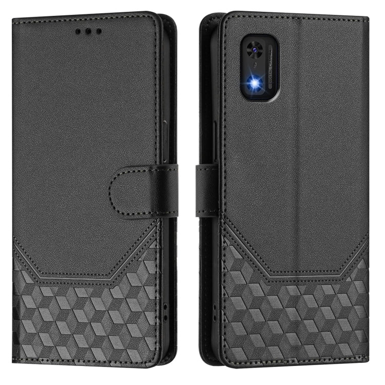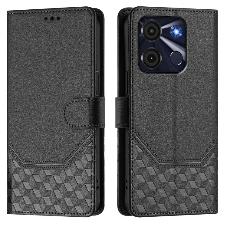 Funda de Cuero Rfid con Relieve en Panal para Teléfono Itel A60/A60S (Negra)