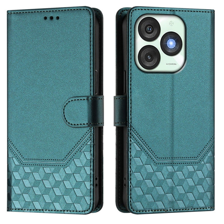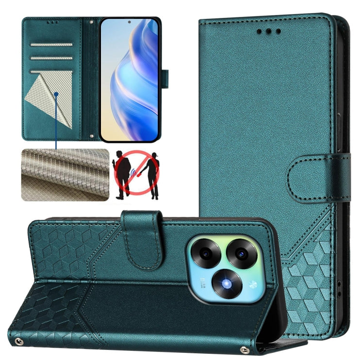 Funda de Cuero Rfid con Relieve en Panal para Teléfono Itel P40 (Verde Pavo Real)