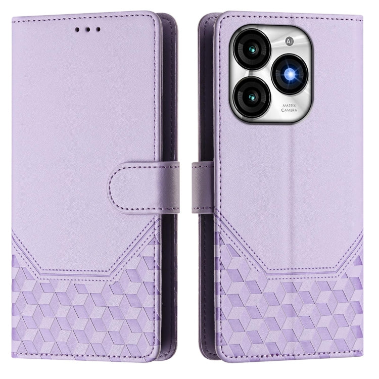 Funda de Cuero Rfid con Relieve en Panal para Teléfono Itel P55+ (Morado Claro)