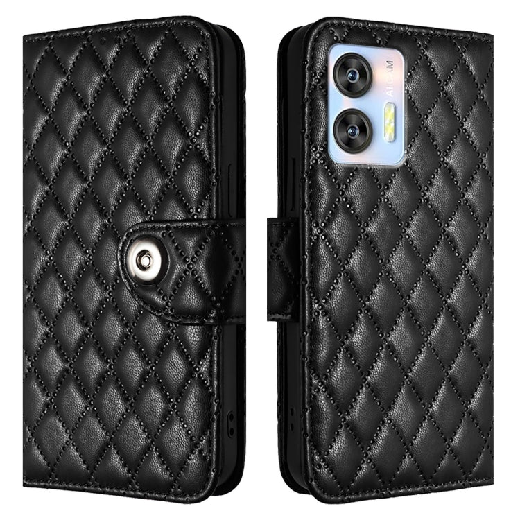 Funda para Teléfono Itel A58 A49 con Tapa de Cuero Textura Rómbica y Cordón (Negro)