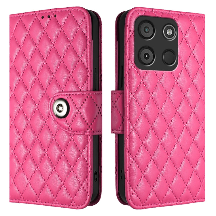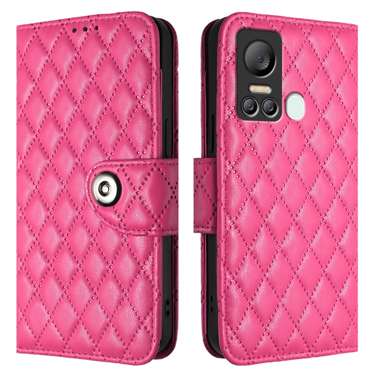 Funda para Itel S18 Vision 5 con Tapa de Cuero Textura Rómbica y Cordón (Rojo Rosa)