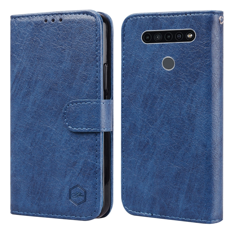 Funda para Teléfono LG K51 Skin Feeling Oil Leather Texture PU + TPU (Azul Oscuro)