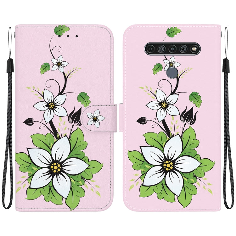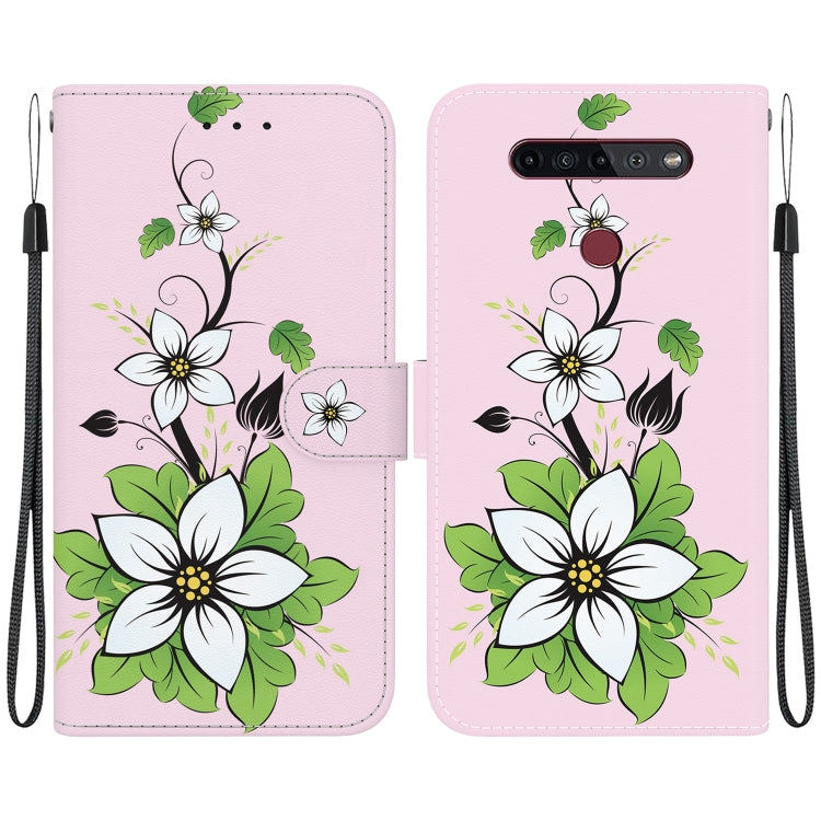 Funda de Cuero para LG K61 con Dibujo Coloreado y Textura de Cristal (Lirio)