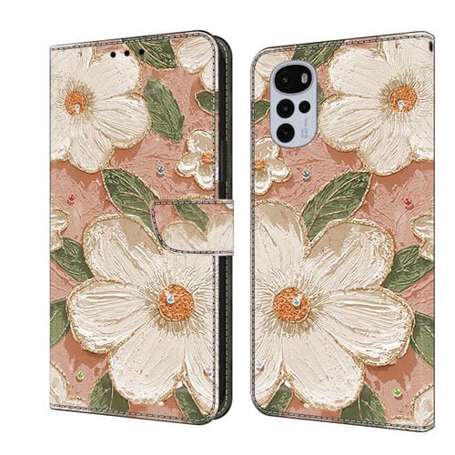 Funda de Cuero Pintada a Mano para Motorola Edge 30 Neo (Flores Beige)