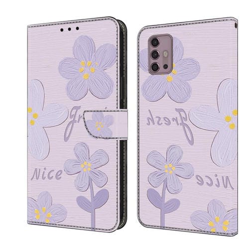 Funda de Cuero Pintada al Óleo para Motorola Moto G04 (Flores Moradas)