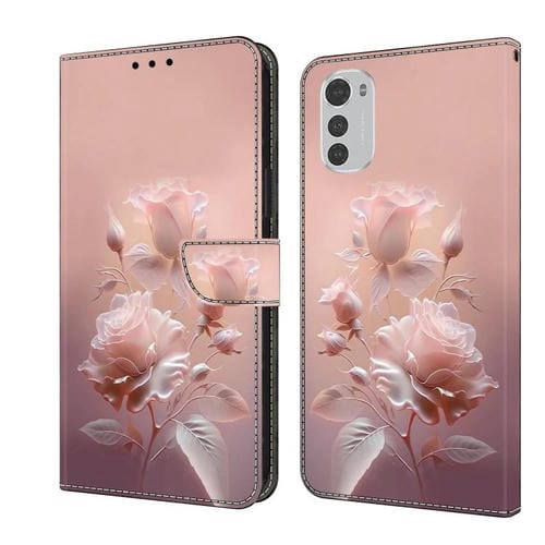 Funda de Cuero Pintada a Mano Motorola Moto E32 con Flores de Cerámica