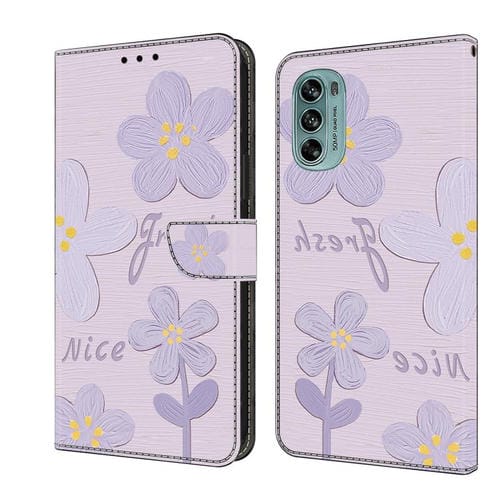Funda de Cuero Pintada a Mano Motorola Moto G84 Protección Floral (Morado)