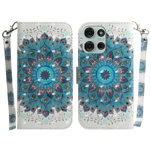 Funda de Cuero con Tapa 3D para Motorola Moto G75 5G (Corona de Pavo Real)